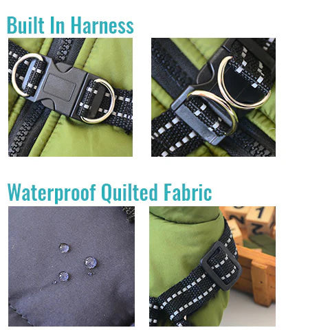 The Wintro Quilted Waterproof Dog Coat with Built-In Harness by DryDogs is an innovative all-in-one winter jacket designed to keep your dog warm, dry, and comfortable — while making walks easier and safer for you both.