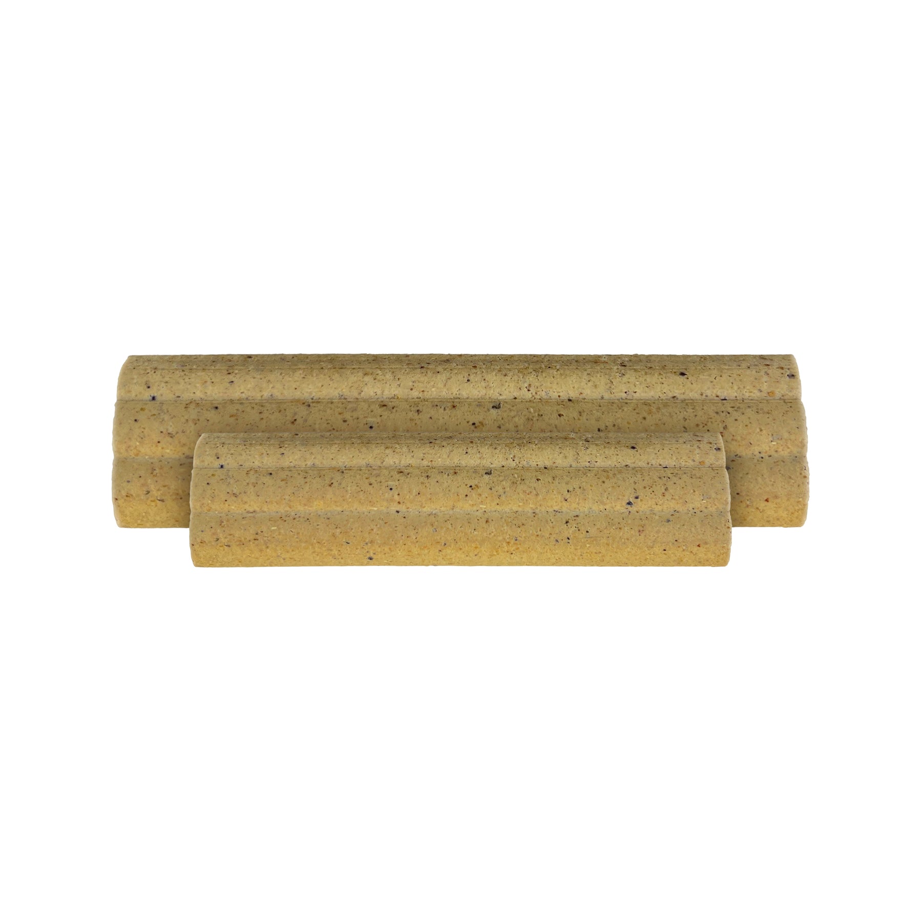 Ziggies Puppy’s softer texture is easy on the tummy and designed to massage puppy teeth and gums for teething relief, while helping to remove plaque and promoting fresh puppy breath through the mechanical action of chewing. Naturally delicious ingredients give this treat an irresistible flavor puppies love without added wheat, corn or soy. KONG Ziggies Puppy chews are ideal given as a treat and for stuffing inside KONG Puppy rubber toys for a fun way to extend daily dental care.