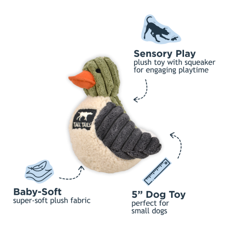 The Tall Tails Duckling is ideal for small dogs and puppies. At 5 inches, it's perfectly sized for gentle play, cuddling, and fetch without being too large or overwhelming.
