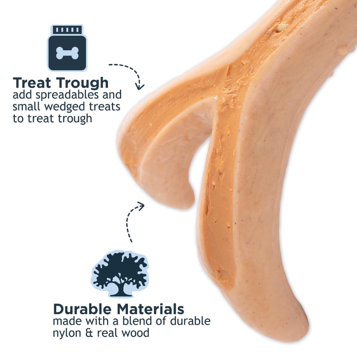 The treat trough is a special groove designed to hold spreadable treats like peanut butter, cream cheese, or dog-safe spreads. This adds extra engagement and makes chew time even more rewarding.